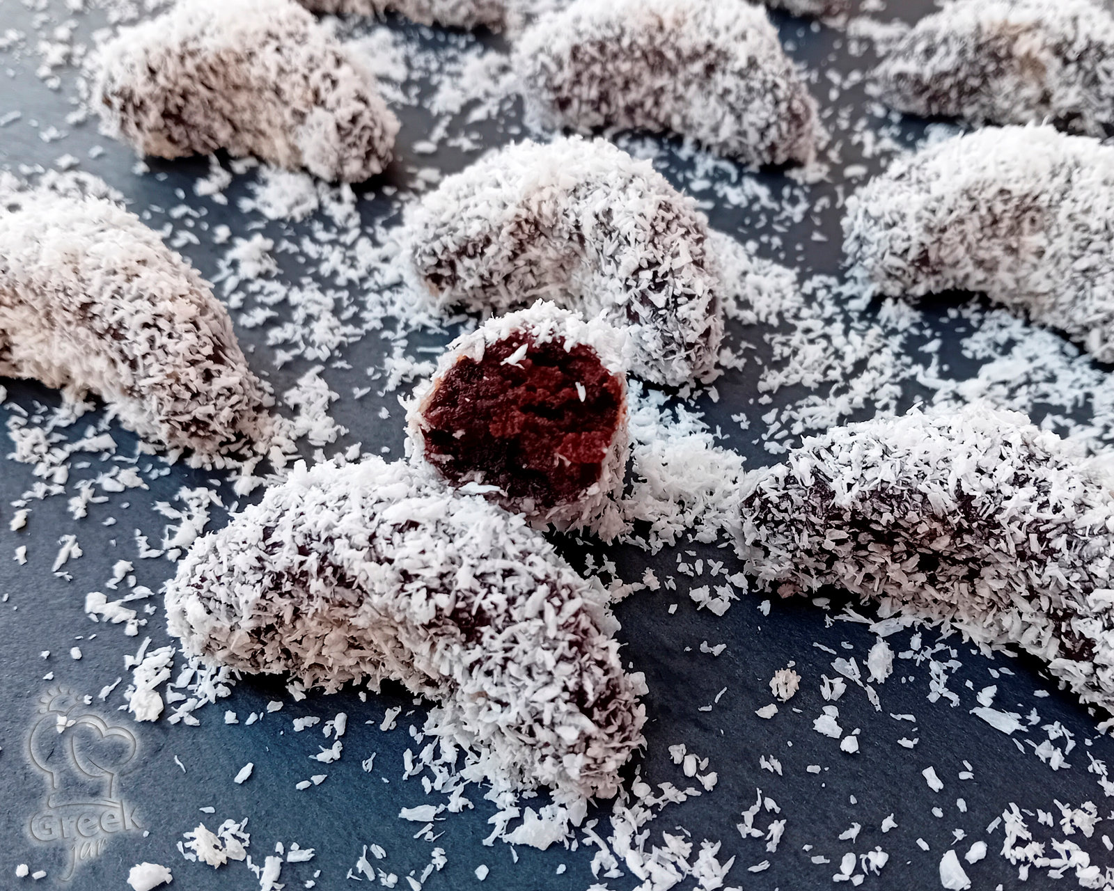- Brush the truffles with the dissolved honey, dip them in the desiccated coconut and they are ready.