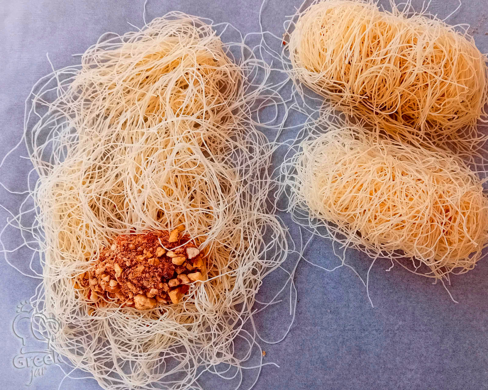 Με τα υλικά αυτά έφτιαξα 16 μεγάλα ρολά και 18 μικρά. Εάν θέλετε περισσότερο φύλλο κανταΐφι σε κάθε ρολό, χρησιμοποιήστε μεγαλύτερη ποσότητα φύλλου και φτιάξτε το δικό σας μοναδικό κανταΐφι.
