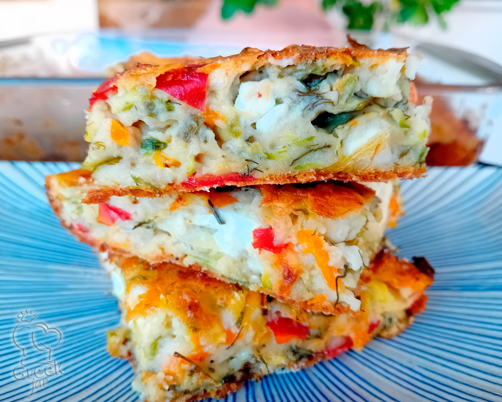 The uncovered zucchini pie, this pie without phyllo dough that we all love, is a delightful summer dish that highlights the flavors of seasonal zucchini and the timeless value of grandma's recipes. The combination of vegetables with fresh herbs and our beloved feta offers a harmonious balance of savory and spicy notes, transporting us to the summers of Greece. Its simplicity and vibrant flavors capture the essence of Greek cuisine, celebrating the value of authentic ingredients. Enjoy it warm, cold, or at room temperature, perhaps with a spoonful of Greek yogurt on the side for an extra layer of creamy texture...