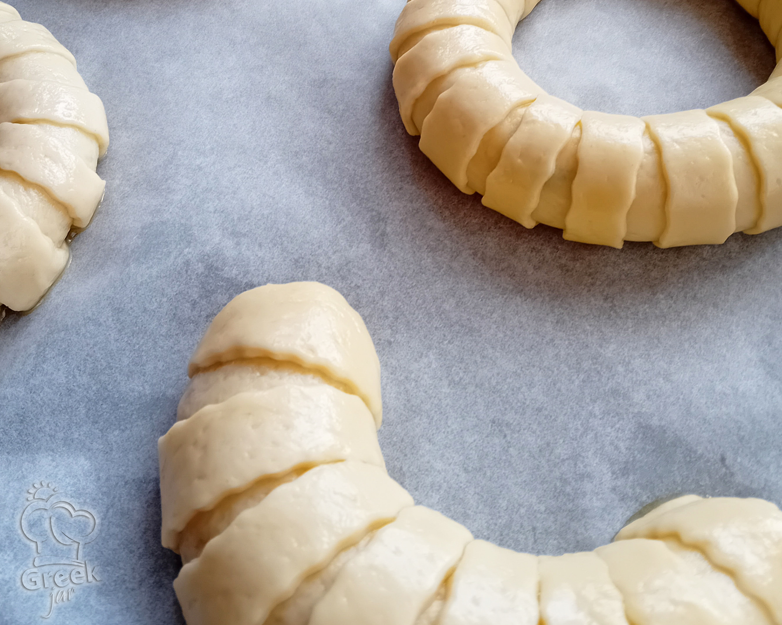 - Transfer to a baking sheet lined with parchment paper and let rise for about 30 min.