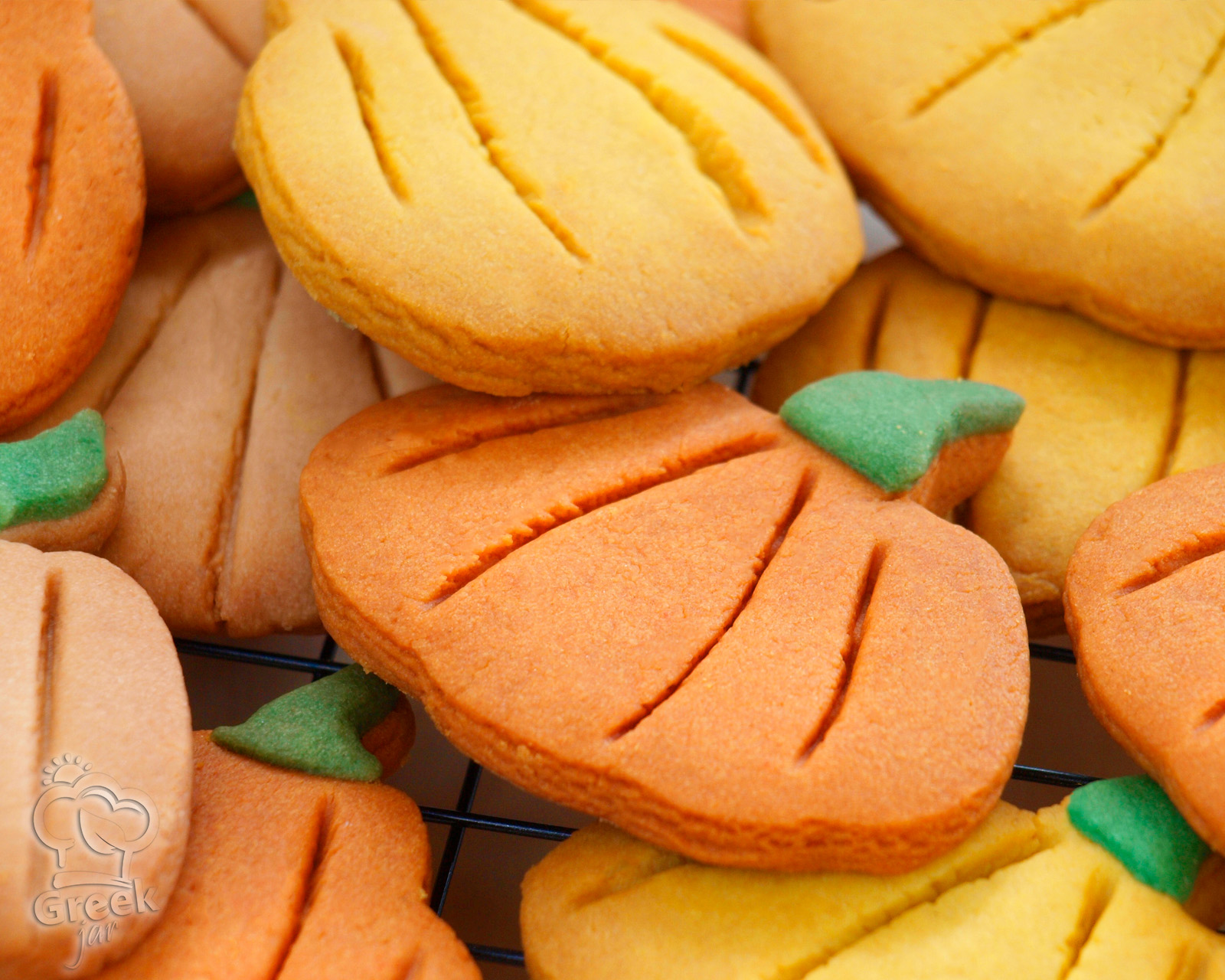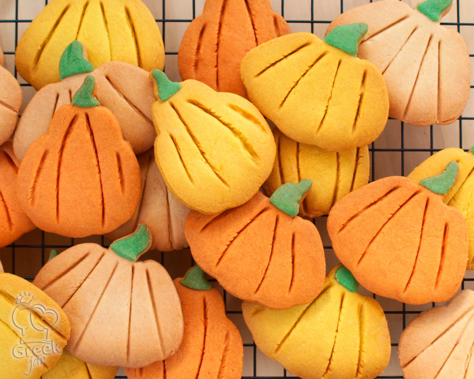 - Roll out the dough to a thickness of 0,6 - 0,8 cm and use a pumpkin-shaped cookie cutter to cut the cookies.