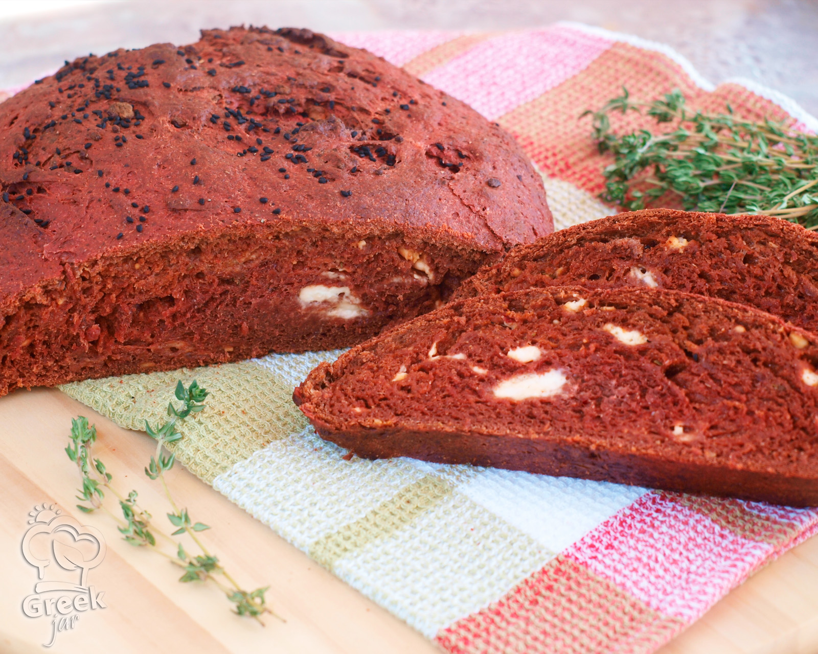 I truly love creations that come alive with the colors gifted to us by nature. Whole wheat beetroot bread, infused with the earthy and sweet essence of beetroots, is a true testament to the natural hues and the richness of the ingredients hidden within the earth. Every bite carries the freshness and authenticity of nature, revealing the power of simplicity and purity. When this bread is paired with delicious Greek feta, the aroma of fresh thyme, and a few drops of pure olive oil, it elevates into a gastronomic symphony of flavor and aesthetics. The flavors blend harmoniously, creating an experience that awakens childhood memories — summers in the village, tables full of smiles and warmth.